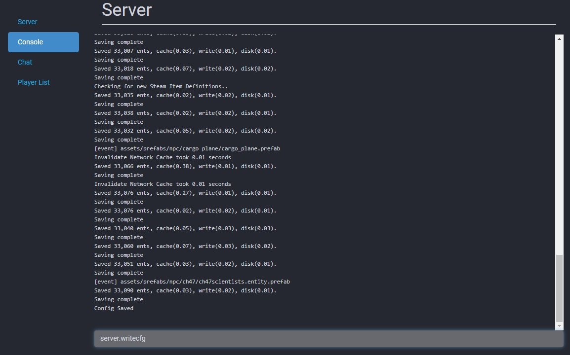 An RCON Client is separate software the connects to your server directly allowing you to monitor and send commands. There are a few software options, and some web based options allowing you to connect any time. Set up your server's RCON settings on the command line. Facepunch has an online remote web console but unfortunately it is not HTTPS!