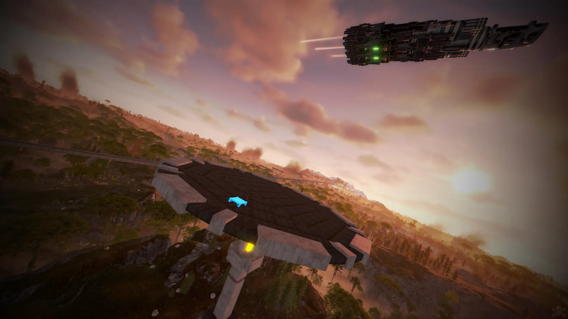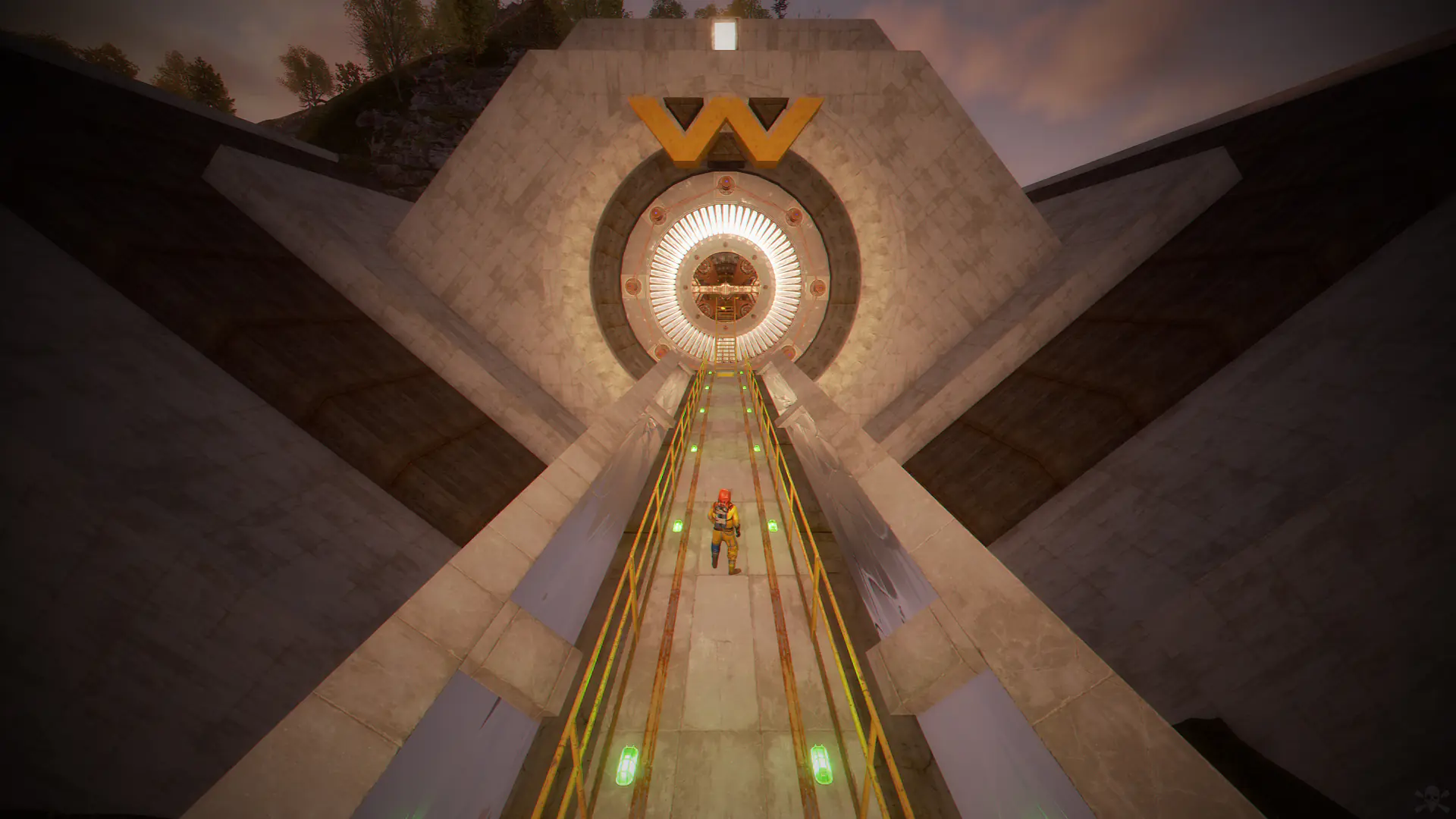 Ziggurat temple • Jungle ruins • Radtown • Ferry Terminal • Nuclear missile silo • Large oil platform • Small oil platform • Submarine laboratories • Harbor • Large fishing villages • Fishing villages • Launch site • Satellite dish • The Dome • HQM Quarry • Stone quarry • Sulfur quarry • Arctic Research Base • Sewer Branch • Train yard • Junkyard • Abandoned military bases • Military tunnel • Caves • Large barns • Ranch • Bandit camp • Power plant • Swamp • Airfield • Giant excavation • Outpost • Lighthouse