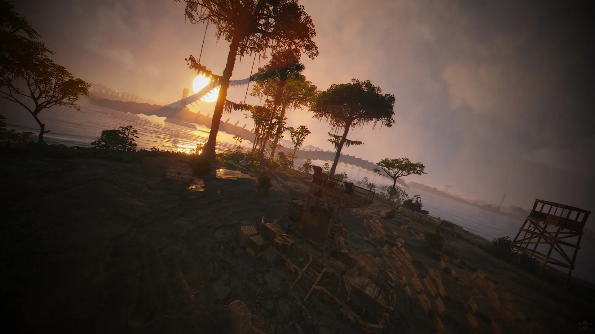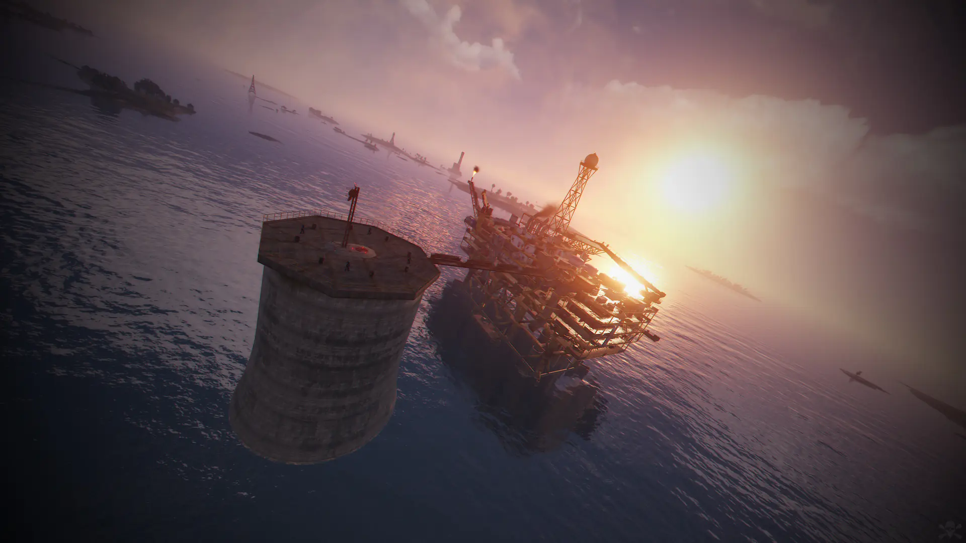 Ziggurat temple • Jungle ruins • Radtown • Ferry Terminal • Nuclear missile silo • Large oil platform • Small oil platform • Submarine laboratories • Harbor • Large fishing villages • Fishing villages • Launch site • Satellite dish • The Dome • HQM Quarry • Stone quarry • Sulfur quarry • Arctic Research Base • Sewer Branch • Train yard • Junkyard • Abandoned military bases • Military tunnel • Caves • Large barns • Ranch • Bandit camp • Power plant • Swamp • Airfield • Giant excavation • Outpost • Lighthouse
